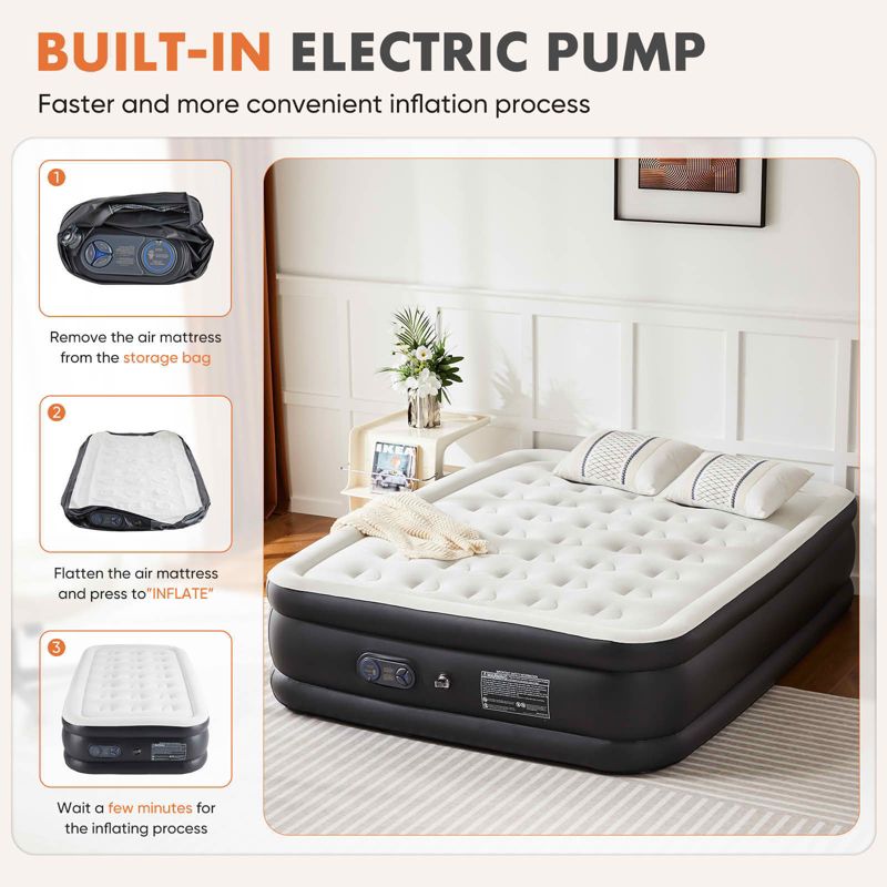 MAYEERTY 18-Inch Air Mattress with Built-in Pump, Double Height Adjustable Non-Slip Inflatable Airbed
