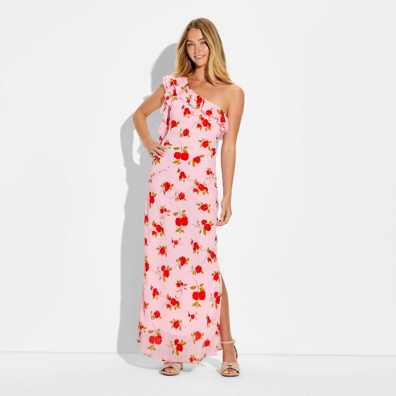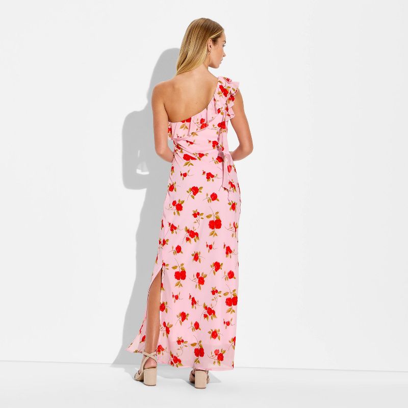 Women's Ruffle One Shoulder Midi Bodycon Dress - Wild Fable™ Pink Floral M