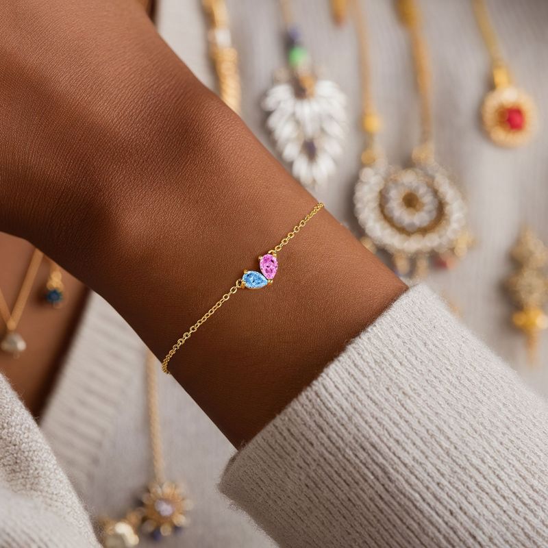 Turandoss 18K Gold Bracelets for Women Girls - Dainty July & August Pear Birthstone Bracelet, Zircon Link Chain Bracelet, Christmas Gifts, 6+2.5Inches