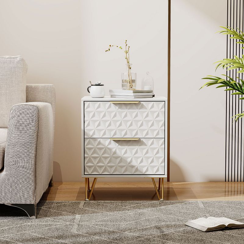 KTMBDW Set of 2 Modern Luxury Nightstand, Bed Side Table with 2 Drawers Storage, Wood End Table with Gold Handle, White Night Stands for Bedroom