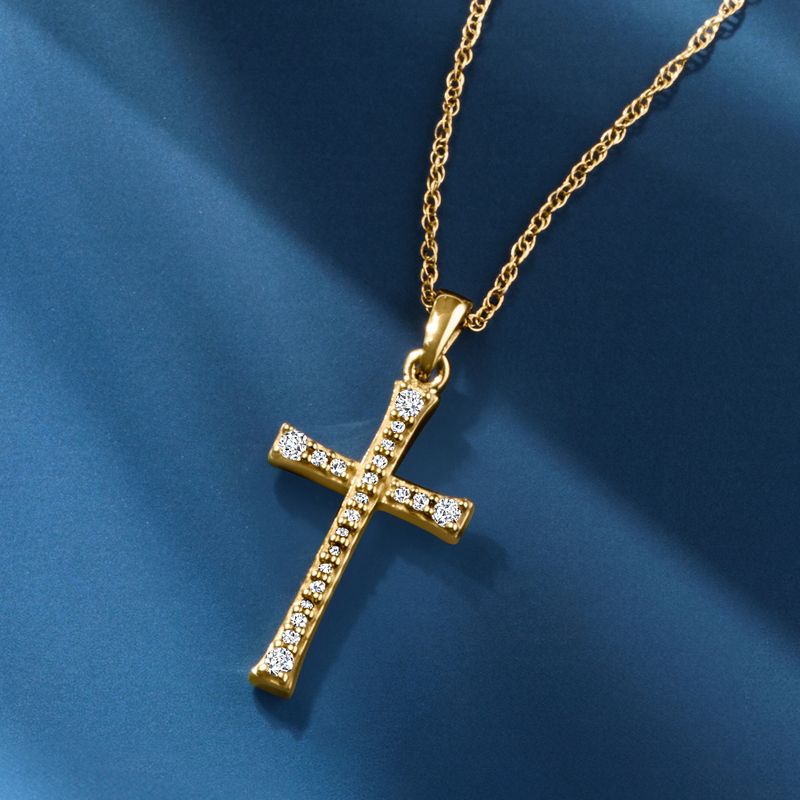 Pure Collection by Ross-Simons 0.10 ct. t.w. Diamond Cross Pendant Necklace in 14kt Yellow Gold Size 18