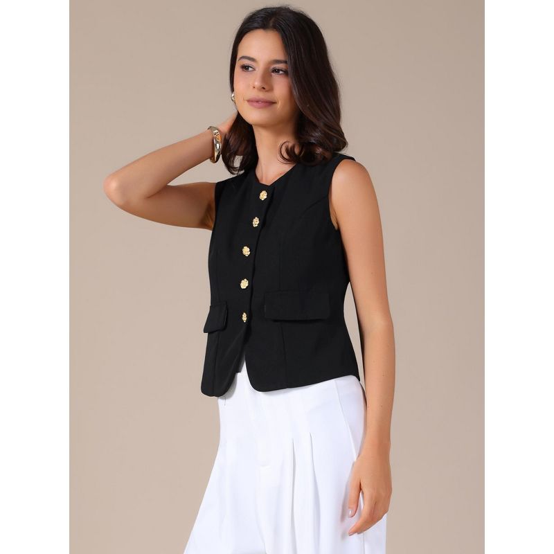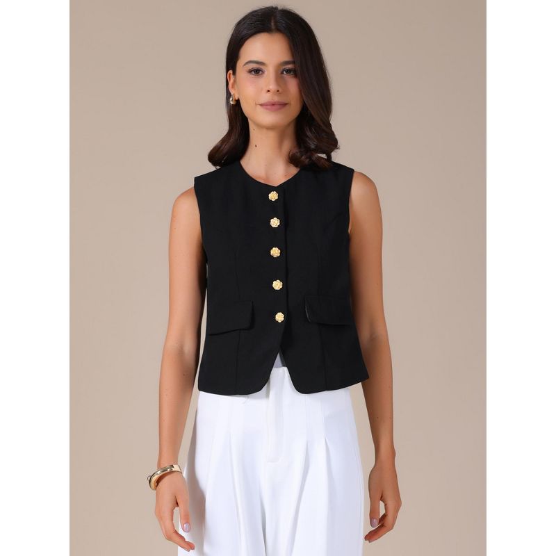 INSPIRE CHIC Women's Round Neck Sleeveless Floral Button Business Casual Suit Vest Black Large