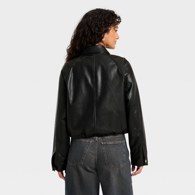 Women's Faux Leather Bubble Jacket - Universal Thread™ Black L