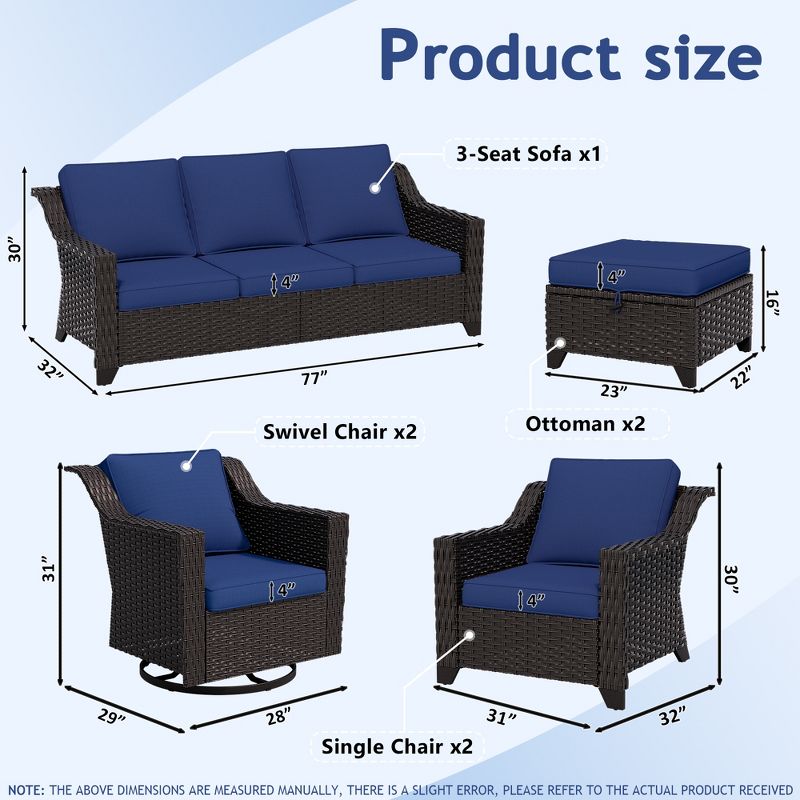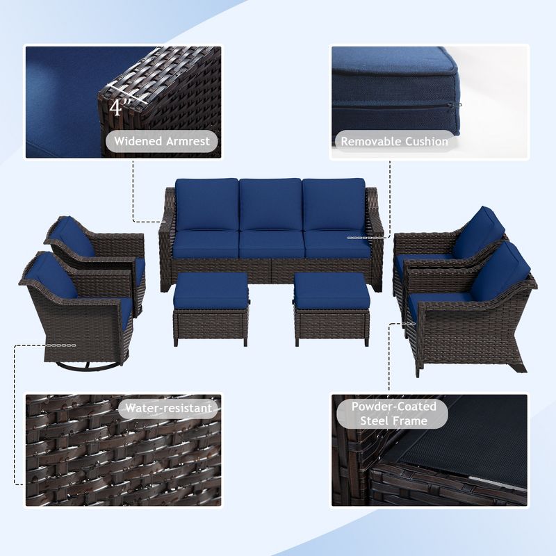 UPTIOT 7-Piece Outdoor Modular Set: 3-Seat Sofa, 2 Swivel Chairs, 2 Armchairs & 2 Ottomans,Blue