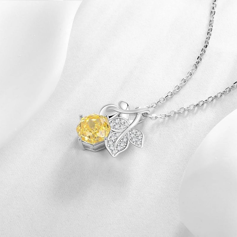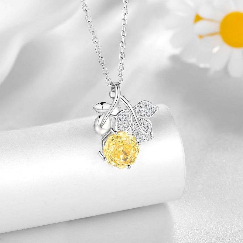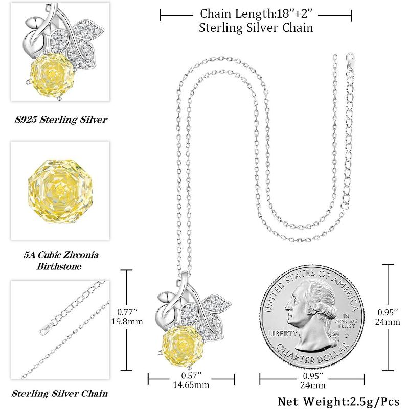 Birthstone Rose Pendant Necklace - 925 Sterling Silver Rose Cut Cubic Zirconia Flower Leaf Necklace G.July 18