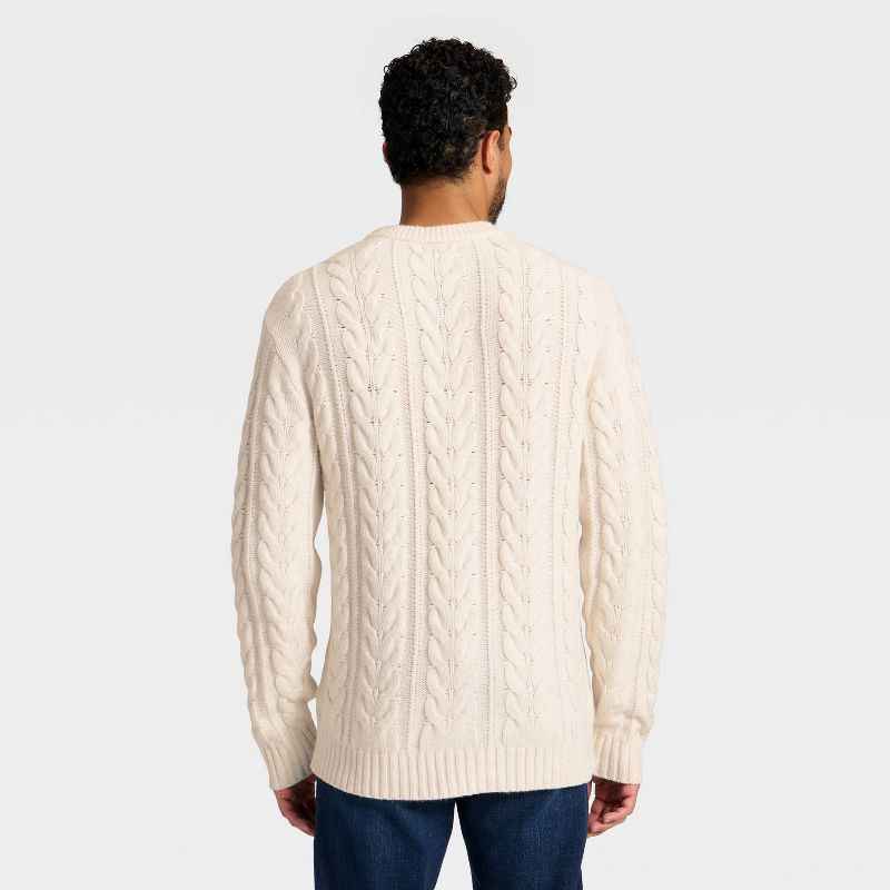 Men's Cable Crewneck Sweater - Goodfellow & Co™ Cream S