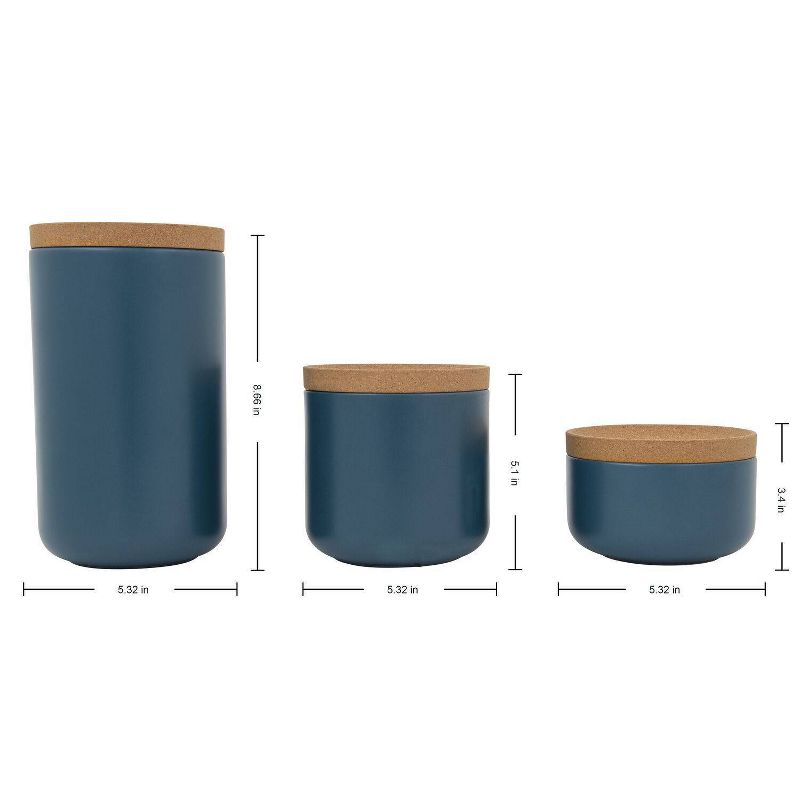 Kamenstein 3pc Canister Set Teal: Ceramic Kitchen Storage & Organization, Cork Lid, Lifetime Warranty