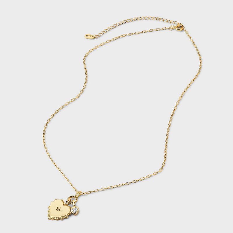 14K Gold Dipped Cubic Zirconia Vintage Valentines Heart Pendant Necklace - A New Day™ Gold