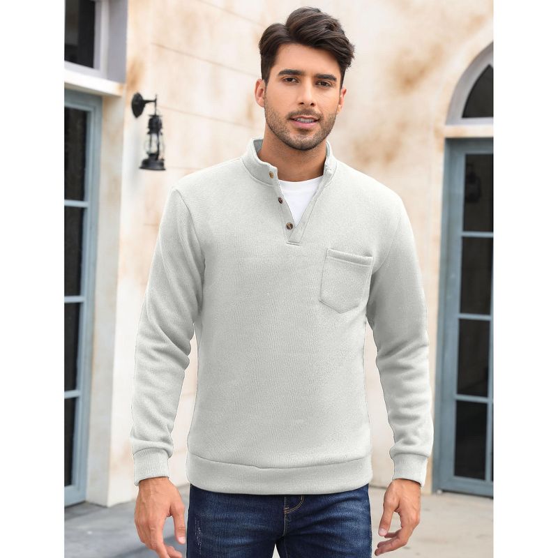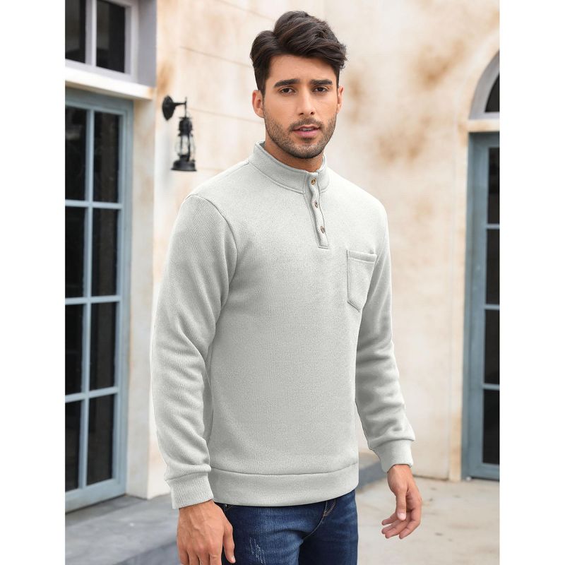 Clearlove Men's Slim Fit Wool Blend Henley Neck Pullover Sweater Warm Knit Long Sleeve Thermal Top Winter Casual Comfort White M