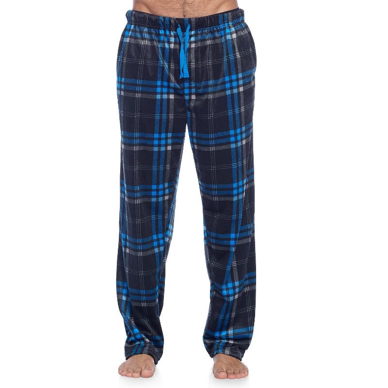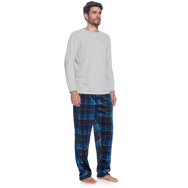 Ashford & Brooks Men's Jersey Knit Long-Sleeve Top and Mink Fleece Bottom Pajama Set - Blue/Black Plaid - XX-Large