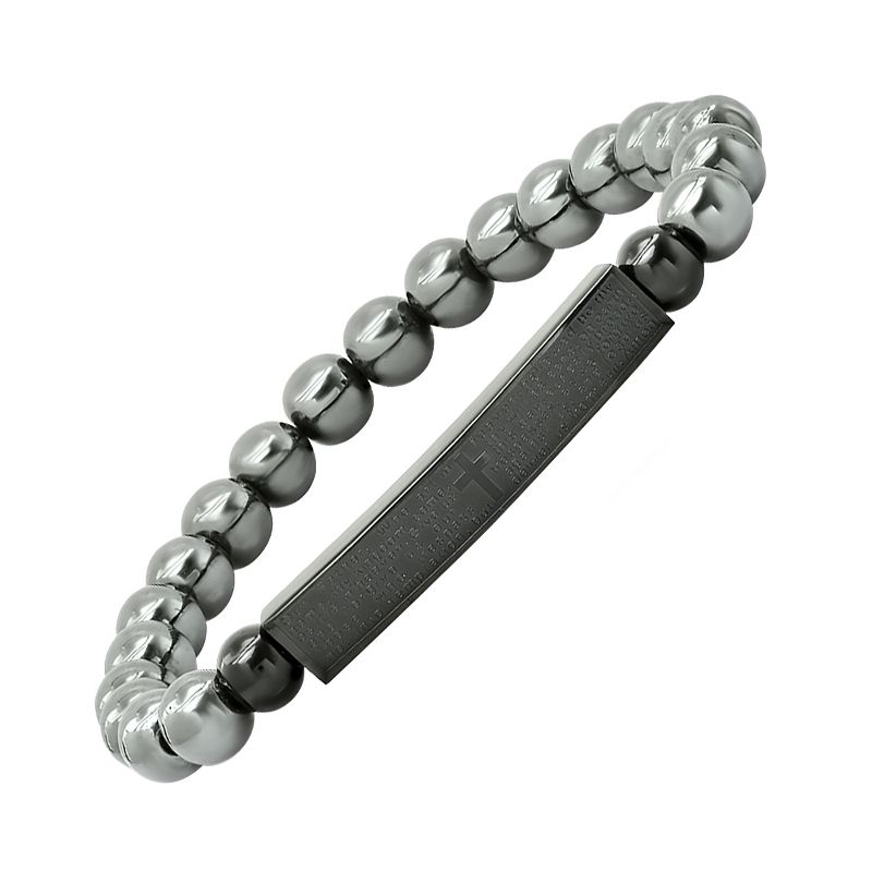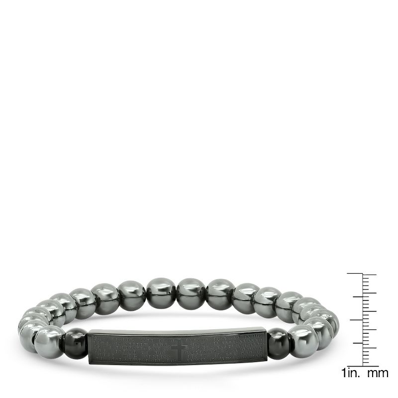 Steeltime Men's hematite and black ip stainless steel Our Father english prayer id beaded bracelet