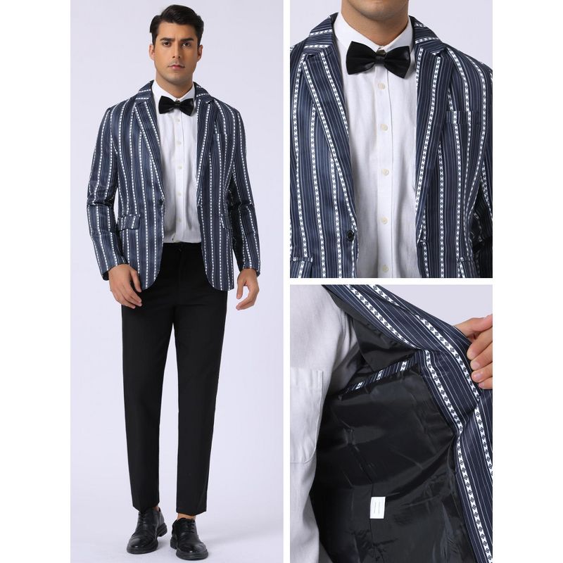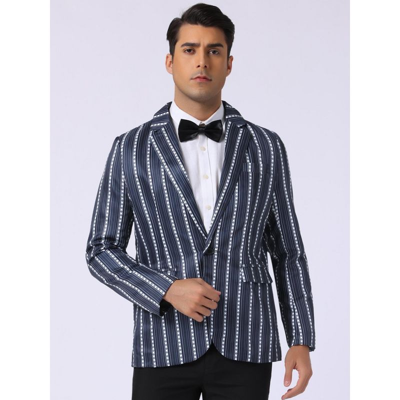 INSPIRE CHIC Men's Single Breasted Contrast Color Striped Blazer Navy Blue Large