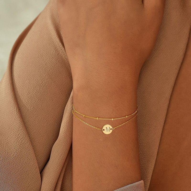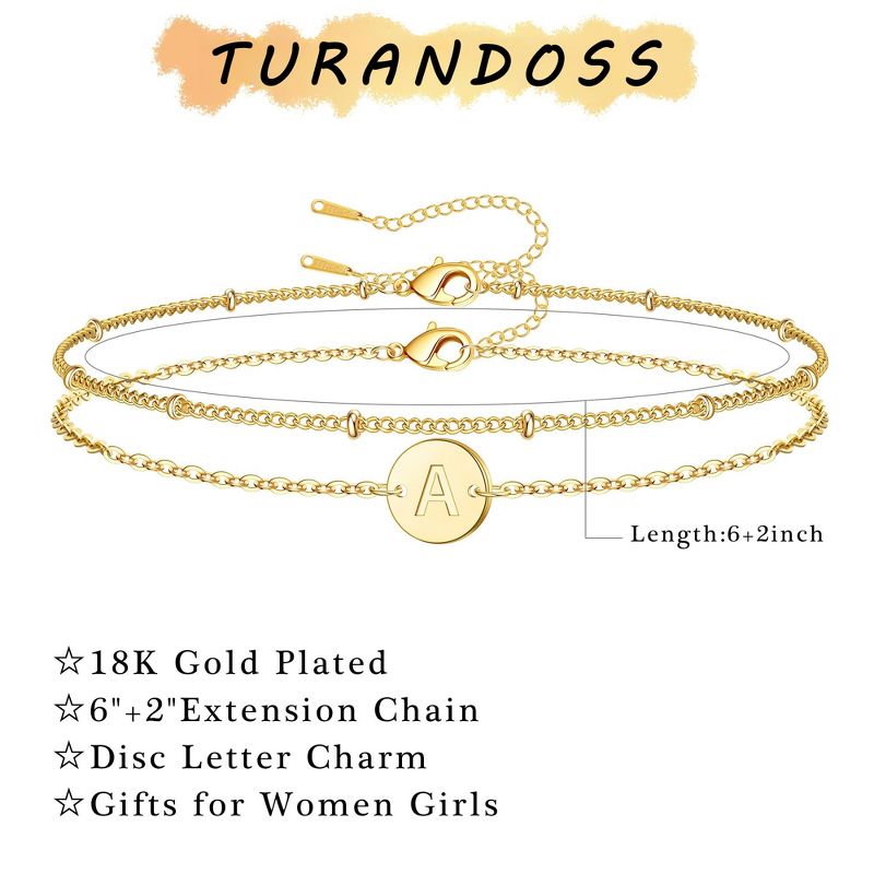Turandoss Gold Initial Bracelets for Women Girls, Dainty Layered Charm Bracelet, Gold Jewelry, Birthday Valentine's Day Gifts for Women, 6+2Inches, B