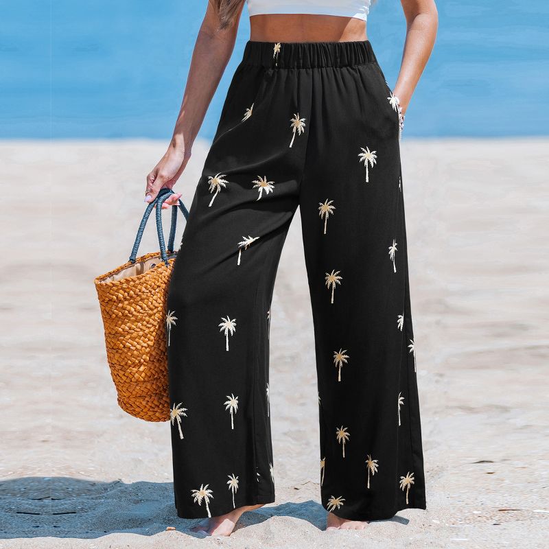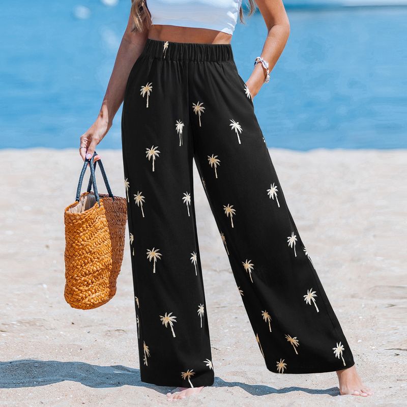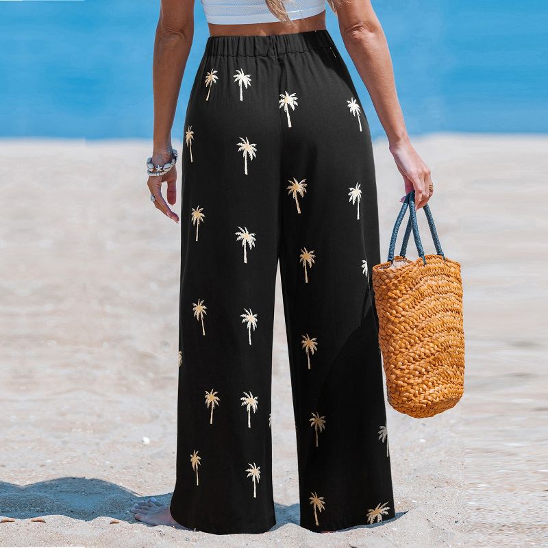 Women's Palm Tree Print Pants - Cupshe-XL-Black