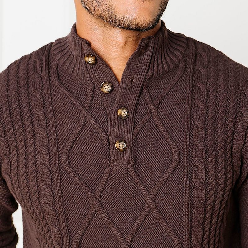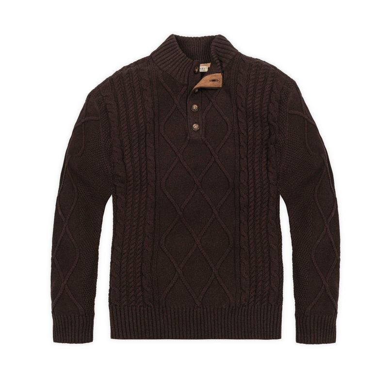 Hope & Henry Men's Organic Mock Neck Cable Sweater, Chocolate Heather, Small