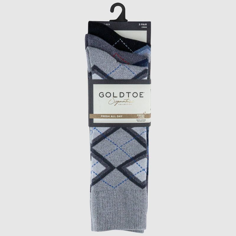 Signature Gold by GOLDTOE Men's Dress Casual Argyle Crew Socks 3pk - Blue/Gray/Light Gray 6-12.5