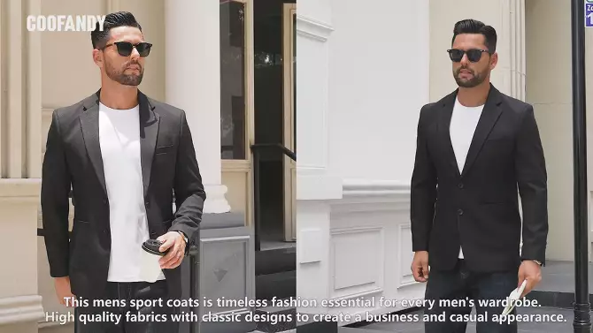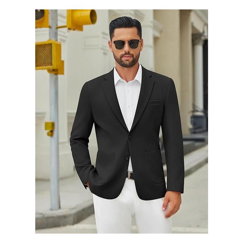 COOFANDY Men's Casual Blazer Jacket Slim Fit Two Button Suit Jackets Lightweight Knit Sport Coat Black L