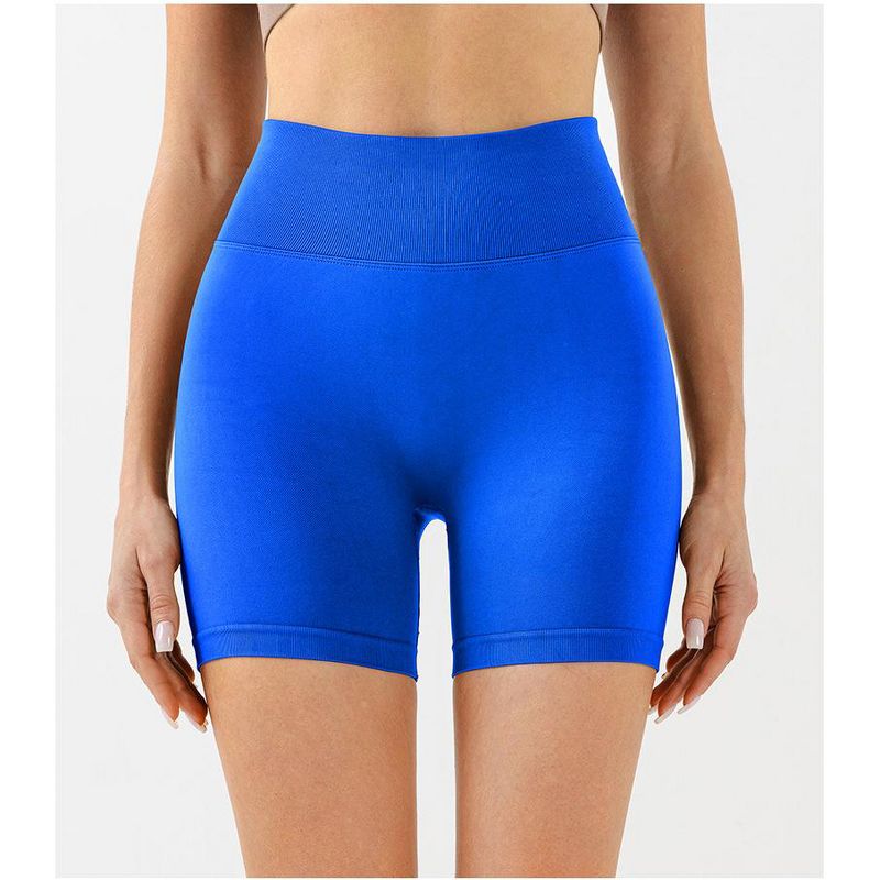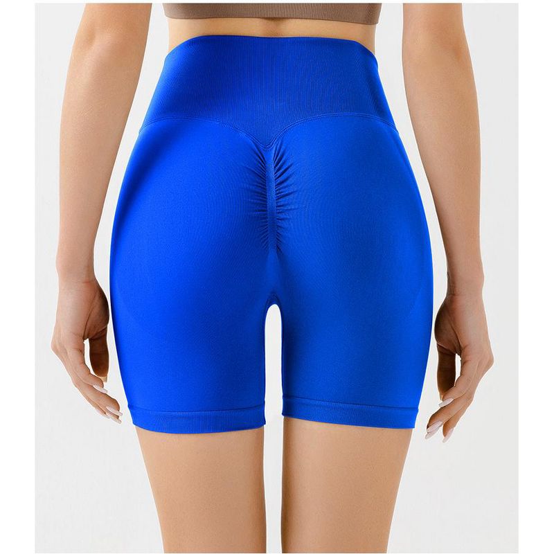 Women's Double-Sided Brushed Yoga Pants High-Waist Peach Butt Lifting Sports Shorts Fitness Three-Quarter Pants Blue S