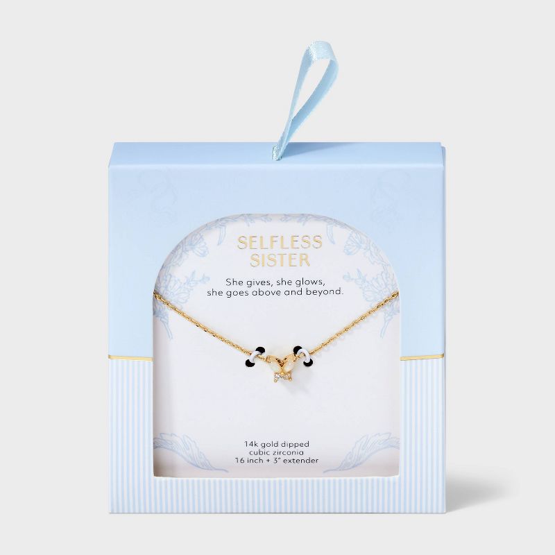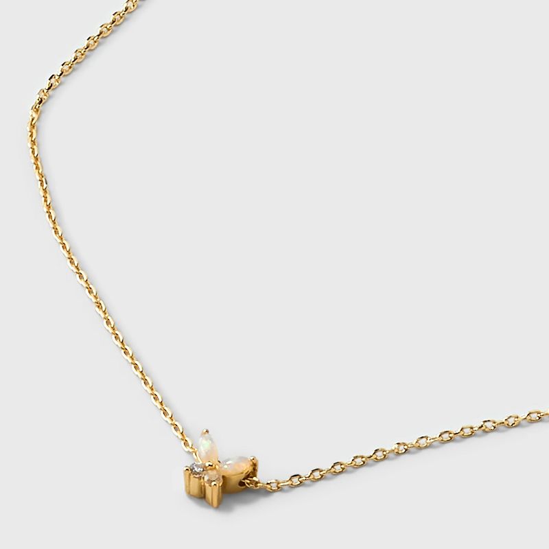 14k Gold Dipped Simulated Opal and Cubic Zirconia Butterfly Slider Necklace with Extender 1pc