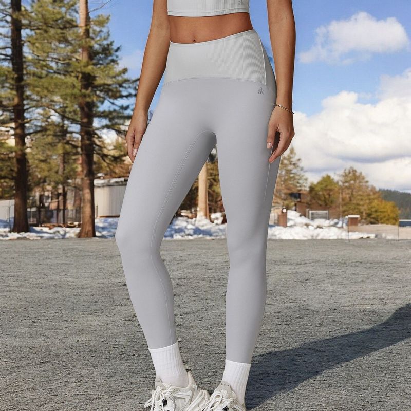 Anna-Kaci Active Women's High Waist Full Length Leggings with Ribbed Waistband- X Large, Light Gray