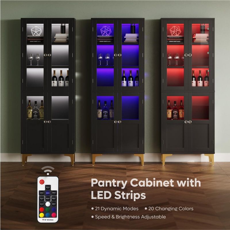 Bestierf 65'' LED Kitchen Pantry Storage Cabinet with Adjustable Shelves , Food Pantry &Art Display Cabinet with Acrylic Transparent Doors,Black