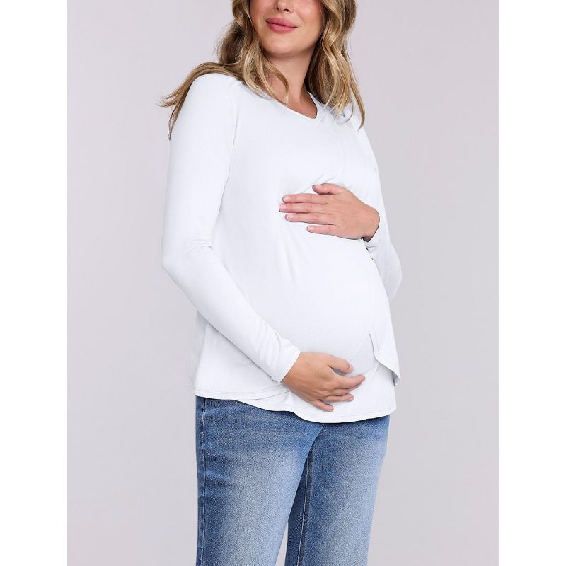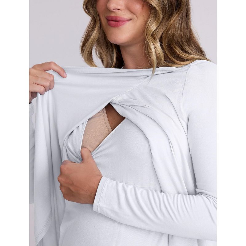 Women's Crewneck Long Sleeve Draped Nursing Maternity Tee - White - Size: Large - Motherhood Maternity