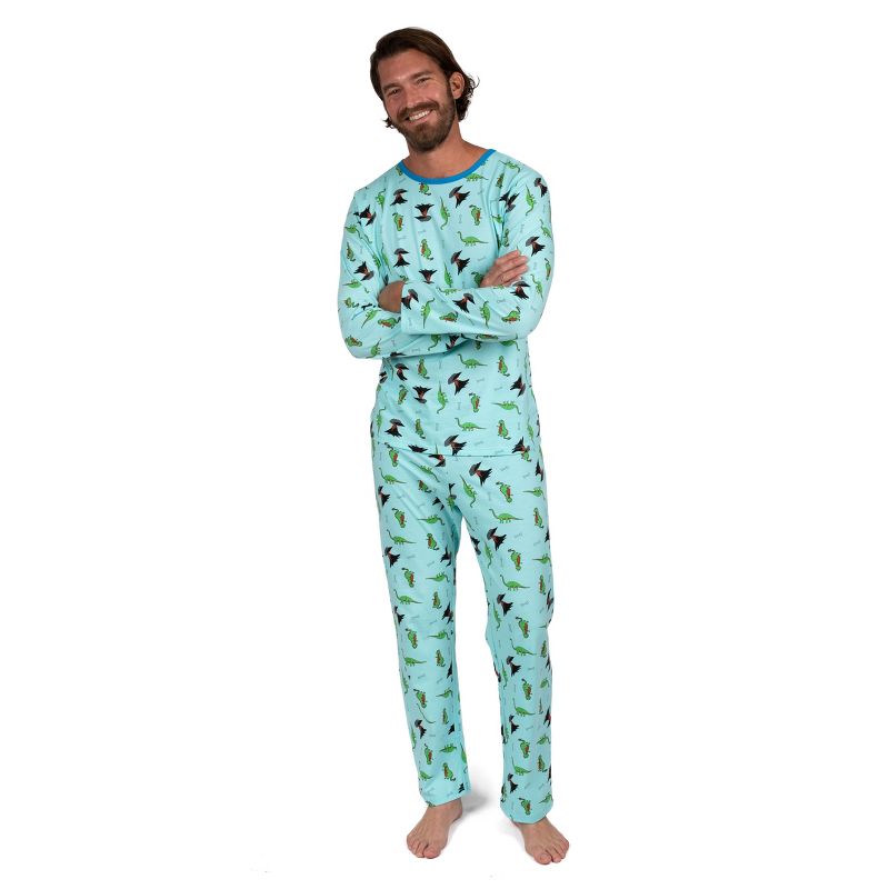 Leveret Mens Two Piece Cotton Loose Fit Pajamas Dinosaur Blue XL
