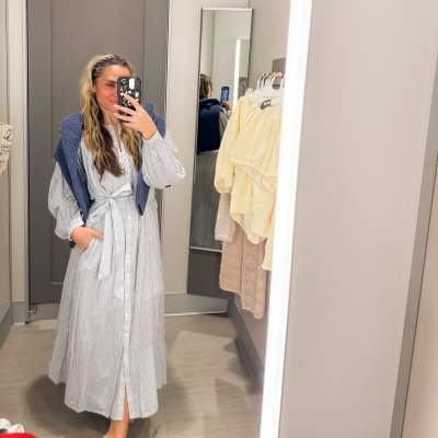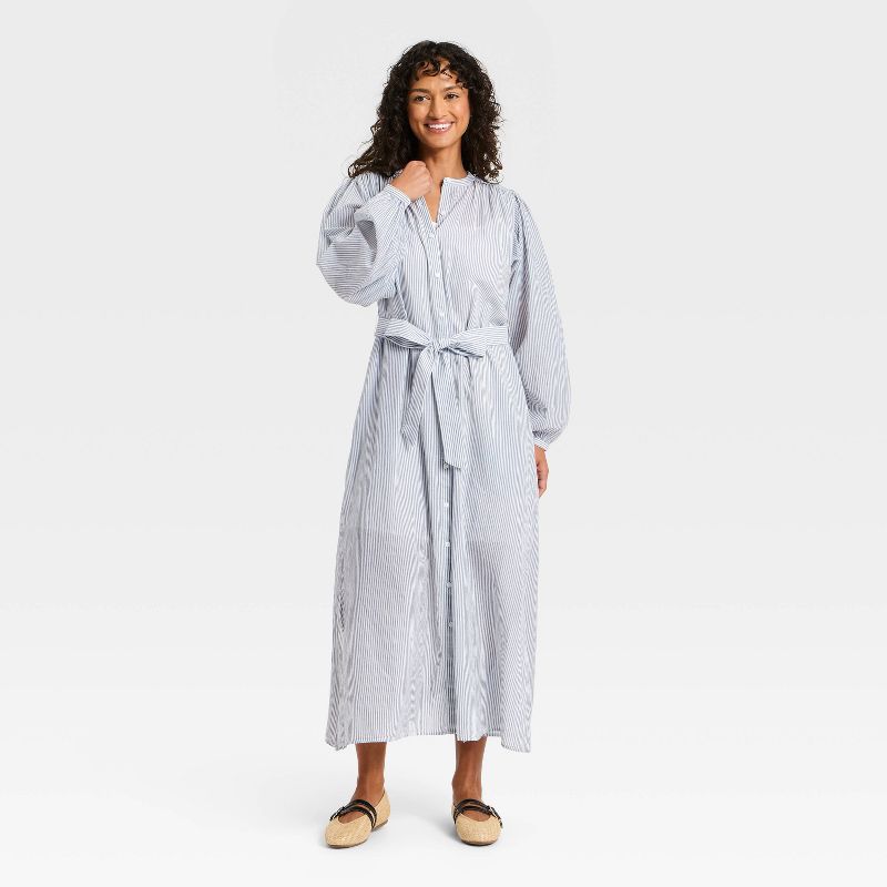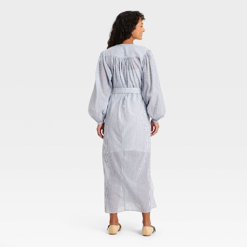 Women's Flounce Long Sleeve Collared Neck Maxi Shirtdress - Universal Thread™ Navy Blue M