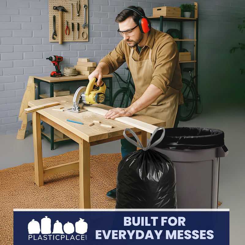 Plasticplace 32-33 Gallon Drawstring Trash Bags, Black (100 Count)