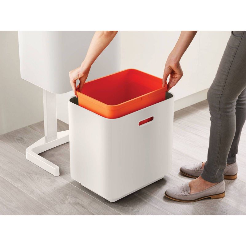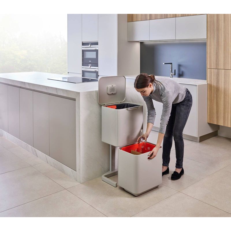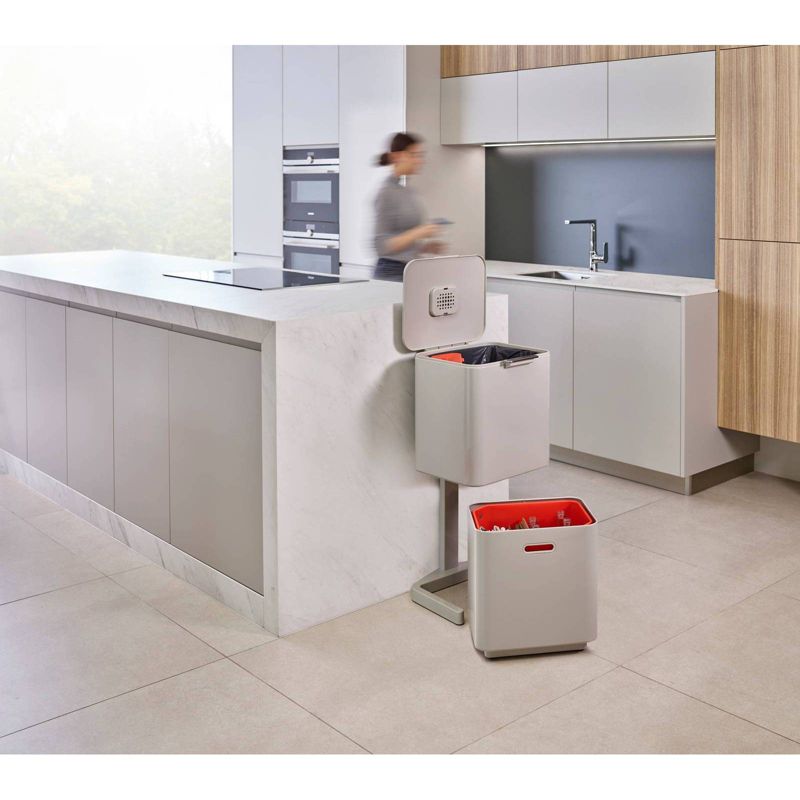 Joseph Joseph Totem 60L Dual Trash Can and Recycle Bin Stone: Aluminum, Removable Inner Bucket, Indoor Kitchen Recycling