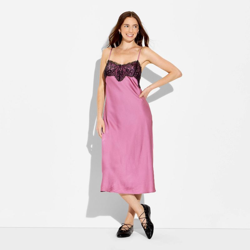 Women's Sleeveless Lace Trim Satin Midi A-Line Dress - Wild Fable™ Mauve XS