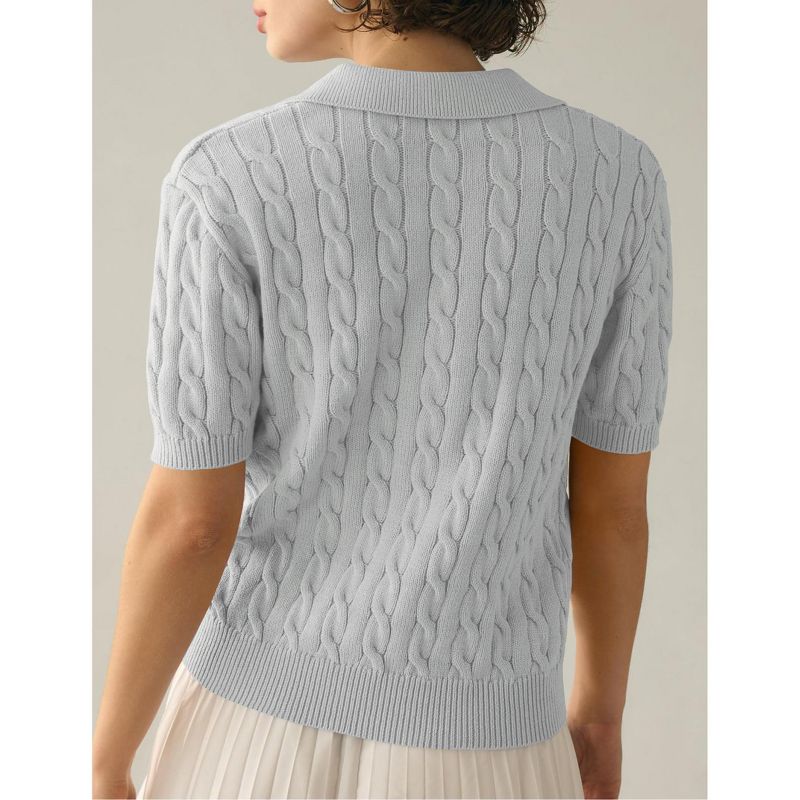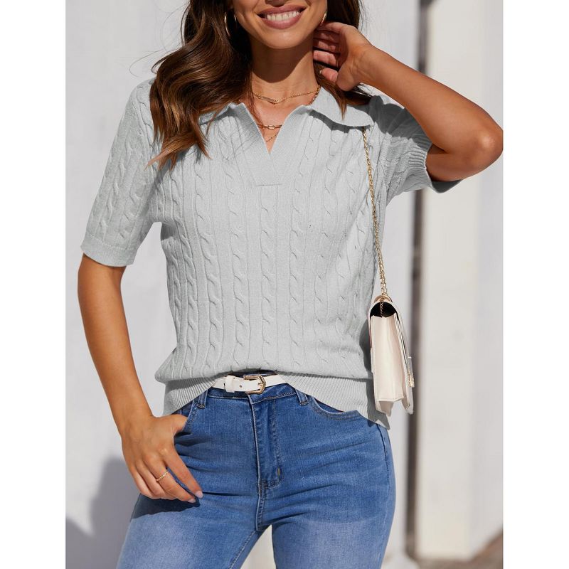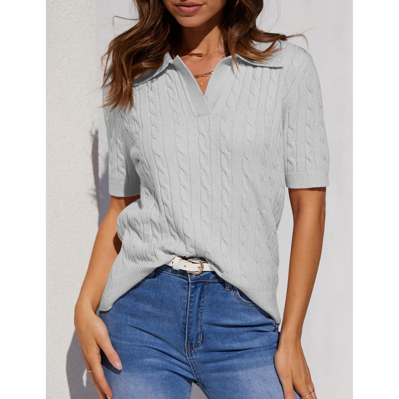 Women's Short Sleeve Sweaters Tops Polo V Neck Cable Knit Casual Soft Pullover Shirts 2026 Summer Outfits