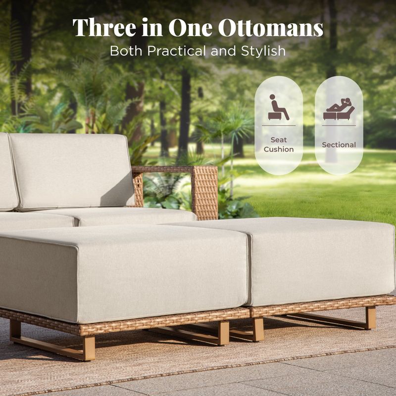 Captiva Designs Outdoor Patio Furniture Sectional Wicker Sofa Conversation Set with 9.8 Inch Thick Cushions with Table