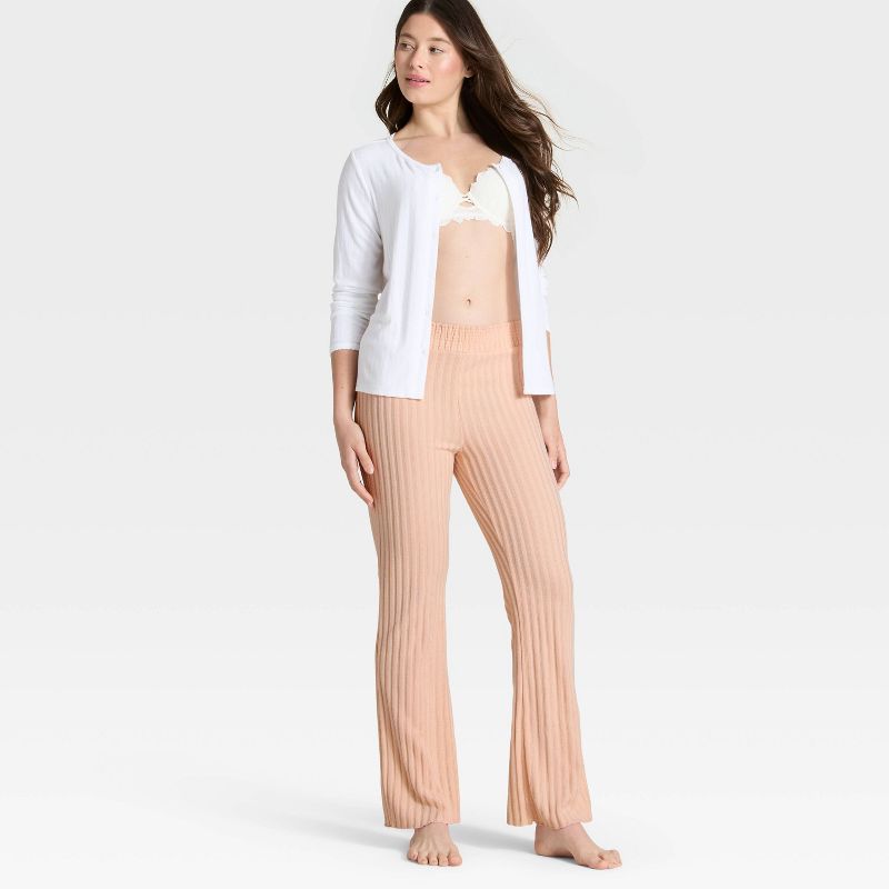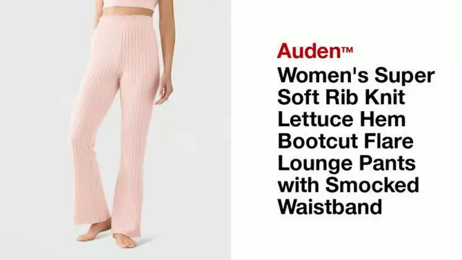 Women's Super Soft Rib Knit Lettuce Hem Bootcut Flare Lounge Pants with Smocked Waistband - Auden™ Pink S