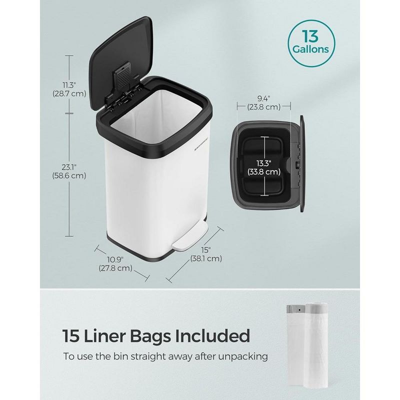 SONGMICS 13 Gallon Kitchen Trash Can Stainless Steel Garbage Can Recycle Bin with Stay-Open Lid and Step-on Pedal, White
