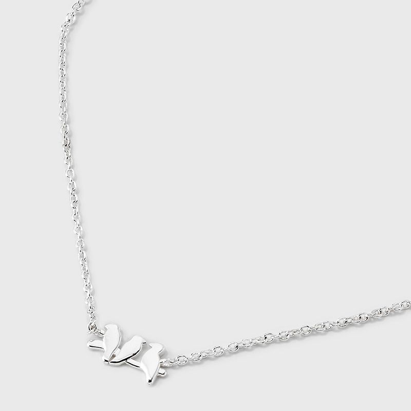 Silver Plated Triple Bird Pendant Necklace - Silver