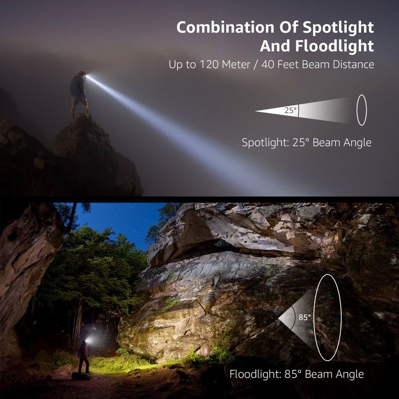 Lepro LED Headlamp Rechargeable 2 Pack, Bright Head Lamp with 5 Modes, Waterproof Headlight Flashlight with Red Light for Camping, Hiking, USB Cable