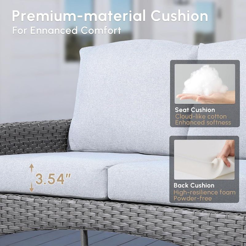 HOMLUX 2 PCS Wicker Outdoor Patio Conversation Set All Weather Porch Deck Balcony Backyard Furniture, Gray