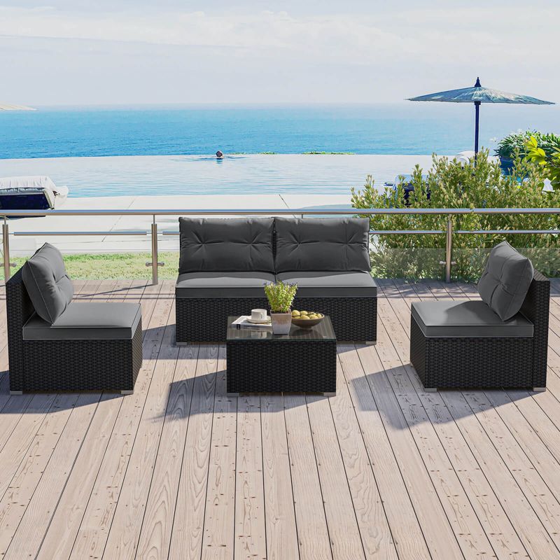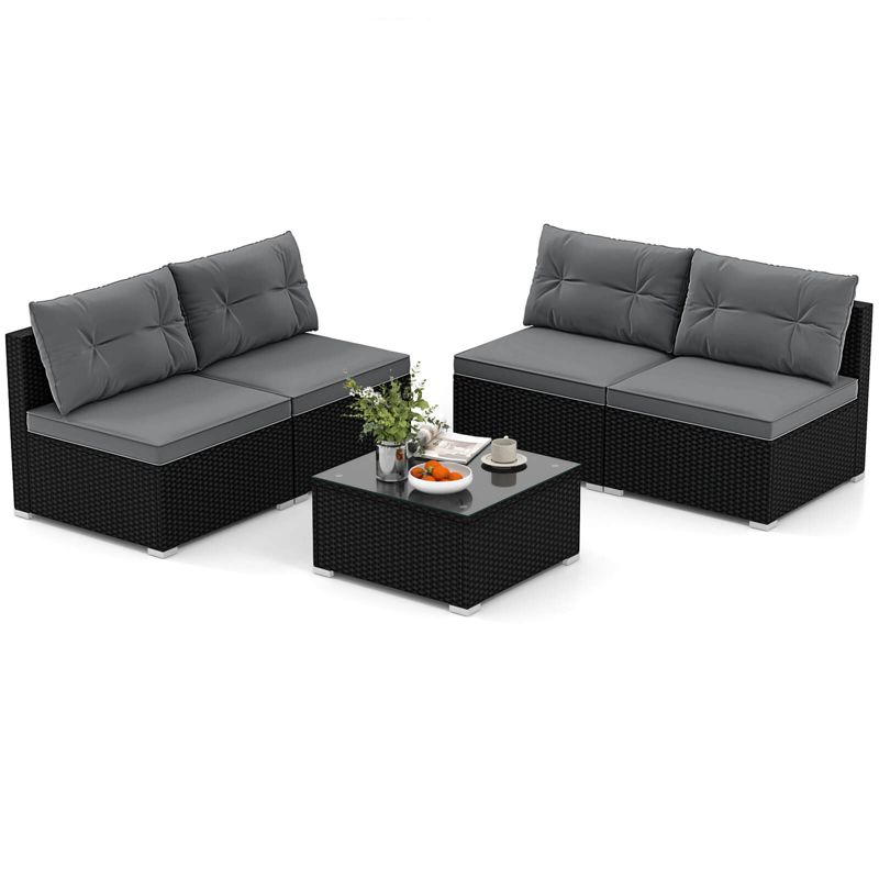 Costway 5 Piece Outdoor Furniture Set with Seat & Back Cushions Tempered Glass Tabletop Gray
