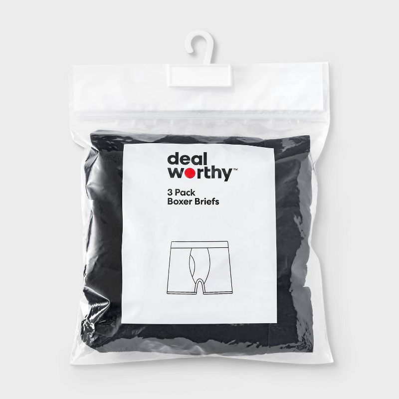 Men's Boxer Briefs 3pk - Dealworthy™ Black L: Cotton & Recycled Polyester, Mid Rise, Jersey Fabric