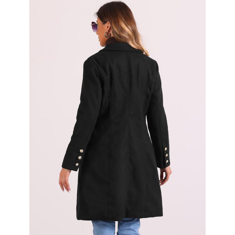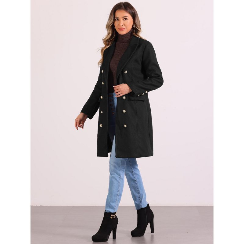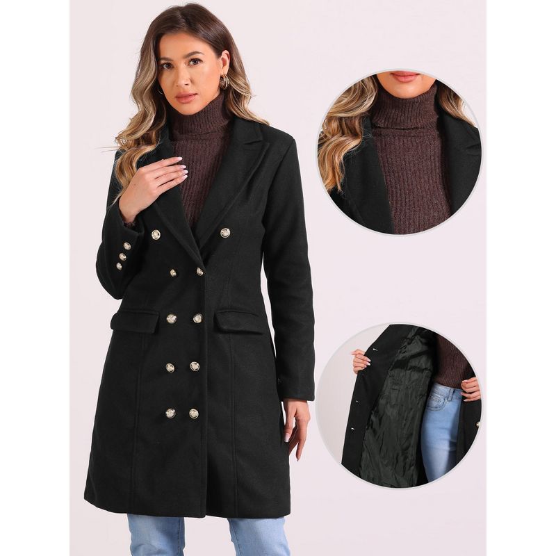 Allegra K Women's Notched Lapel Double Breasted Mid-Long Pea Coat Black Small