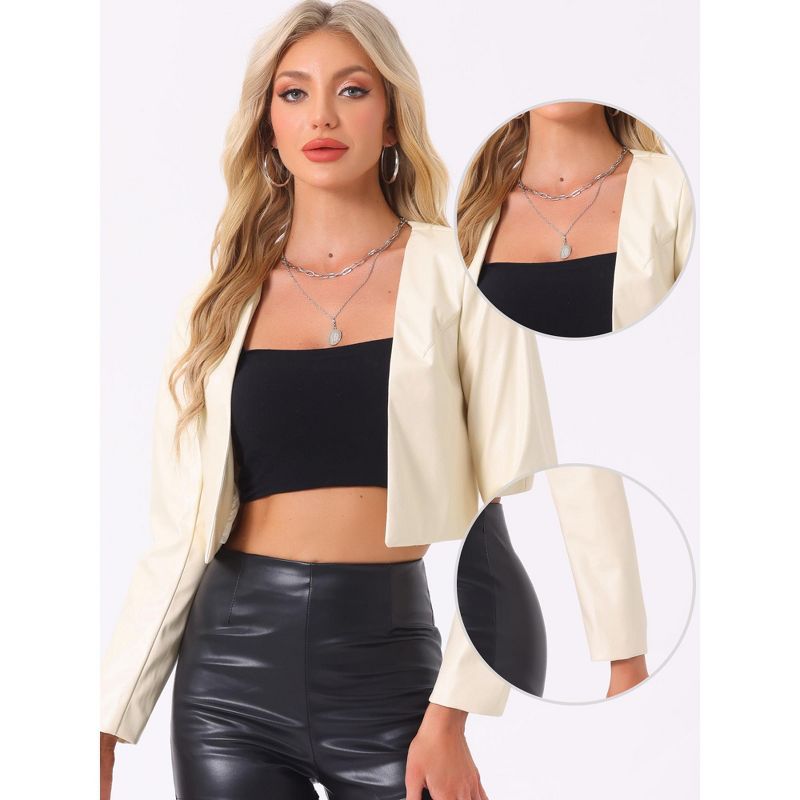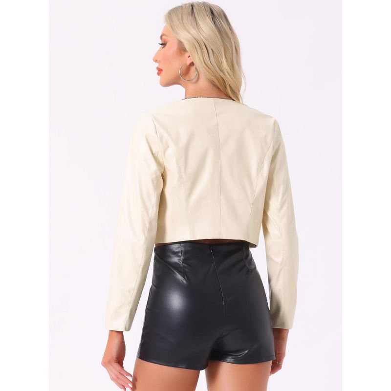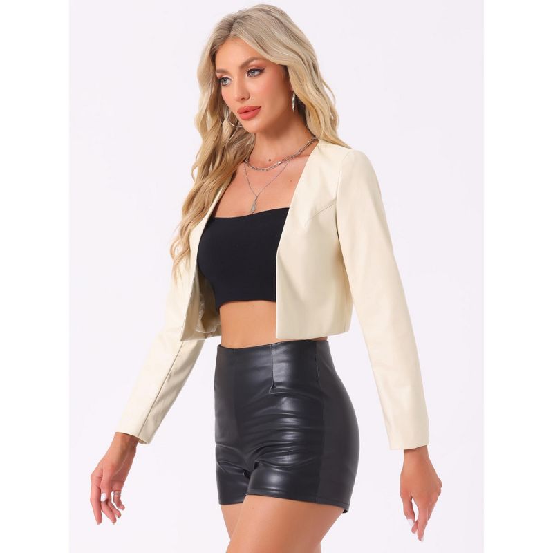 INSPIRE CHIC Women's Faux Leather PU Long Sleeve Open Front Cropped Jacket Beige Medium