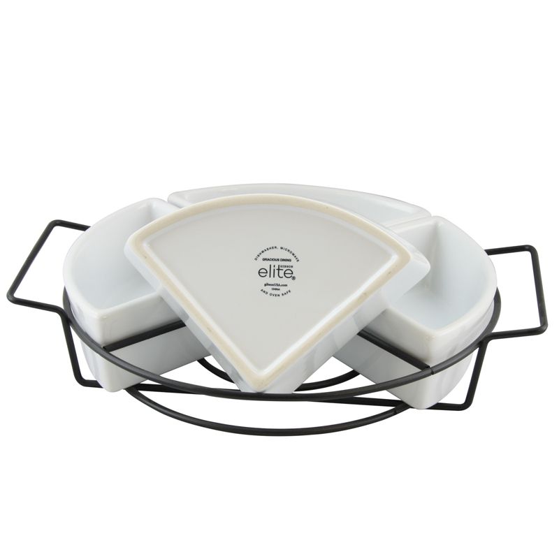 Gibson Gracious Fine Ceramic Dining Four Section Tray Set with Metal Rack in White