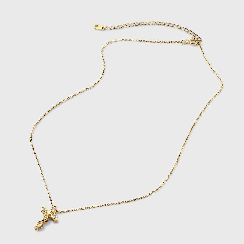 14K Gold Dipped Cubic Zirconia Cross Pendant Necklace - Gold