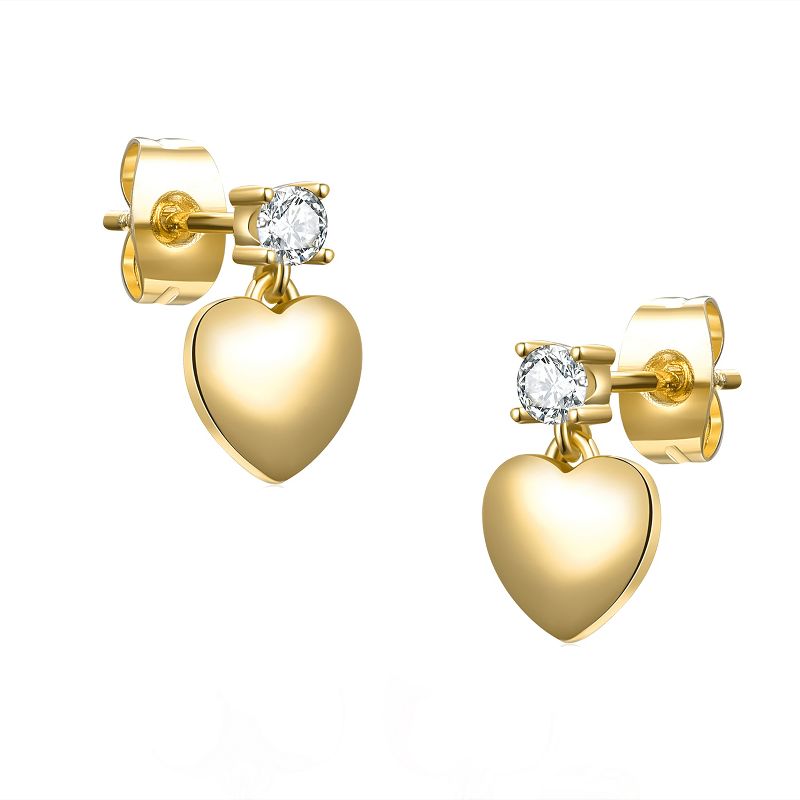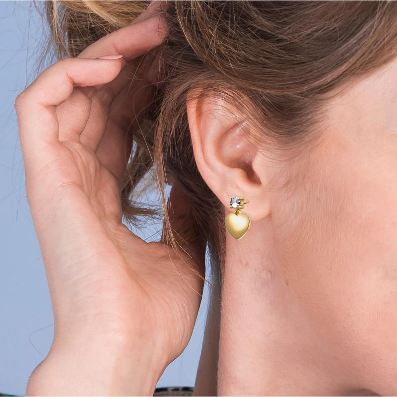 "Radiant Elegance: Sparkling 14k Yellow Gold Heart Dangle Earrings with Cubic Zirconia, Balancing Timeless Charm & Contemporary Sophistication."