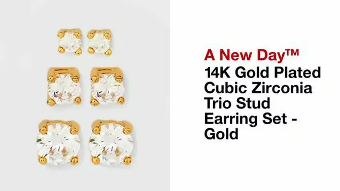 14K Gold Plated Cubic Zirconia Trio Stud Earring Set - A New Day™ Gold: Nickel-Free, Polished Finish, Gift Box Included