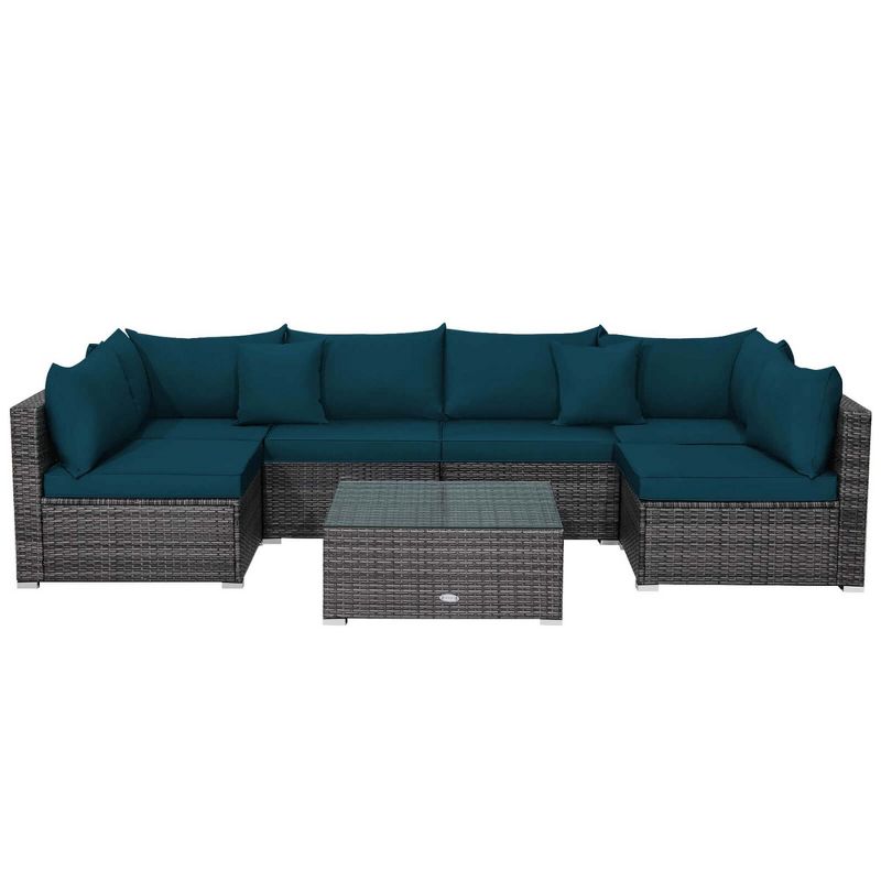 Costway 7PCS Patio Rattan Furniture Set Sectional Sofa Cushioned Garden Peacock Blue