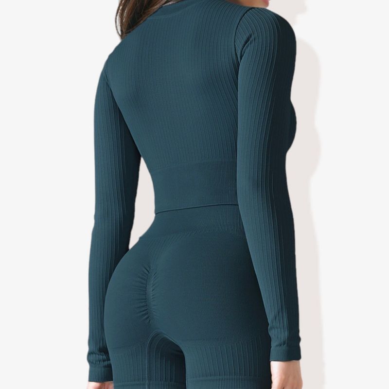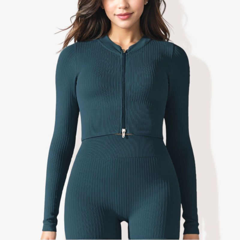 Anna-Kaci Active Women's Rib Knit Long Sleeve High Neck Cropped Sports Jacket-Small, Blue