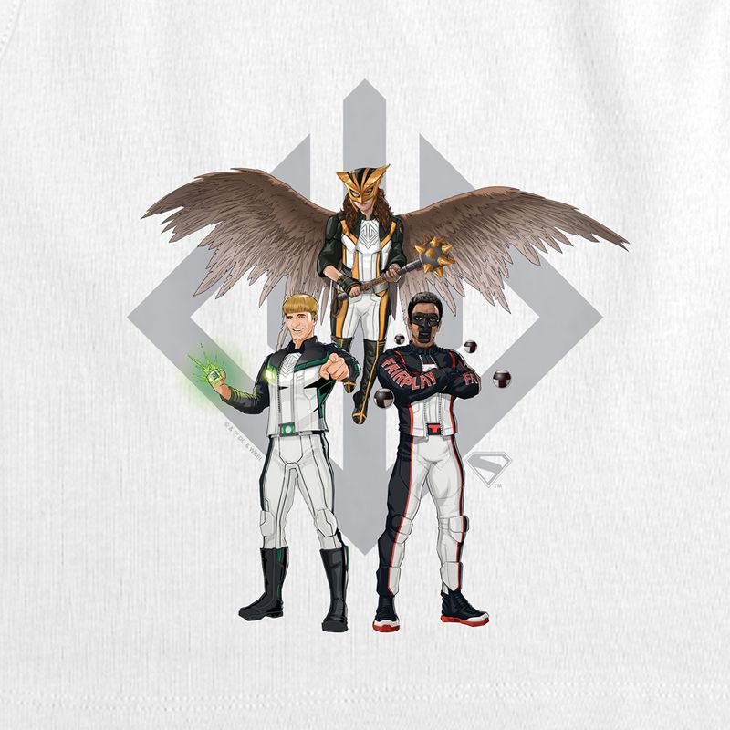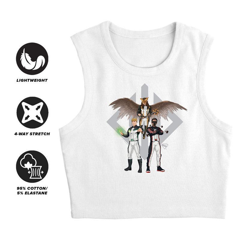 Women's Superman 2025 Justice Gang Trio Grey New Logo Sleeveless Crop Top Tank, White, Medium