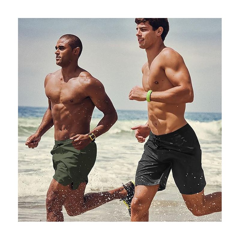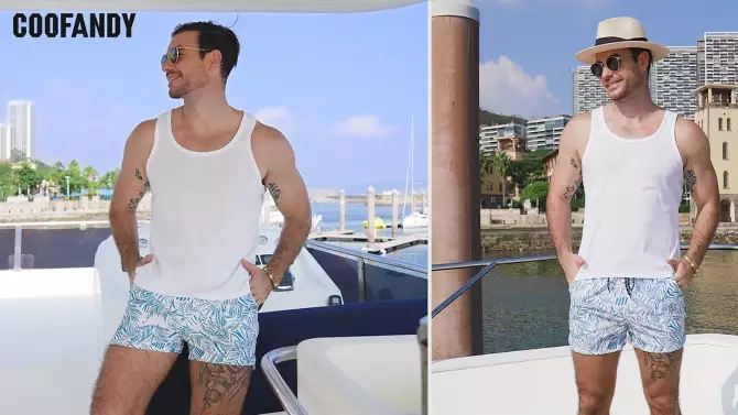 COOFANDY Men's Swim Trunks Quick Dry Board Shorts Swimsuit Swimwear Bathing Suit Deep Blue Plam Leaf S